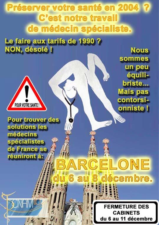 "A ce jour, près de 2.500 médecins ont confirmé leur participation à l'opération +la France sans spécialistes+, avec la fermeture de leurs cabinets du 6 au 12 décembre et un exil symbolique à Barcelone du 6 au 8 décembre", a indiqué au cours d'une conférence de presse le Dr Corinne Panijel, de la Cnamlib (Conférence nationale des associations de médecins libéraux).