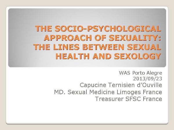 The Socio-Psychological Approach of Sexuality: the Lines Between Sexual Health and Sexology Capucine Ternisien d’Ouville MD. Sexual Medicine Limoges France Treasurer SFSC